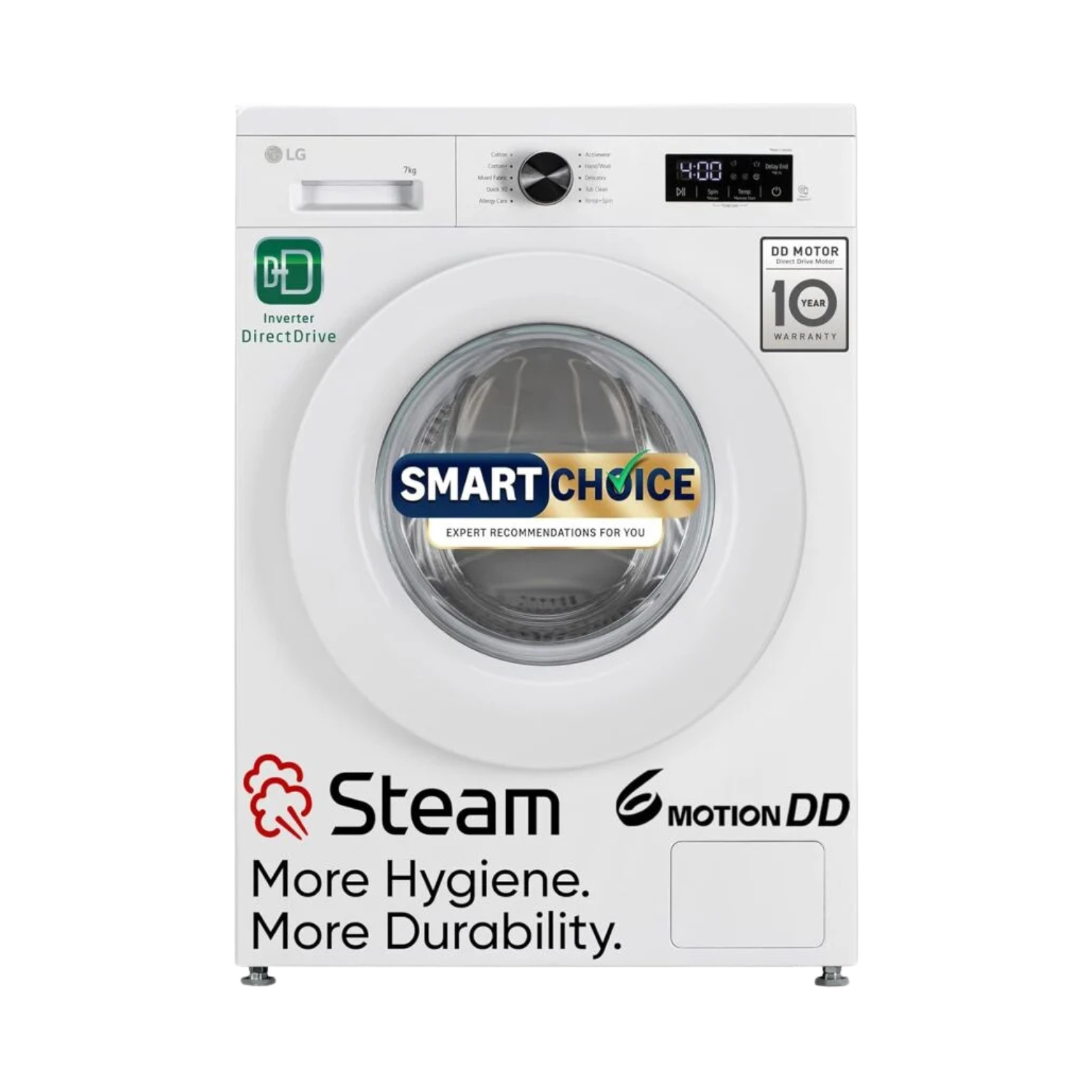 Keep your clothes fresh and hygienically clean with the LG 7 Kg Smart Choice Front Load Washing Machine. Featuring Inverter Direct Drive Technology, Steam Wash, 6 Motion DD, and an in-built heater, it removes tough stains and allergens while being energy-efficient. Perfect for modern homes.